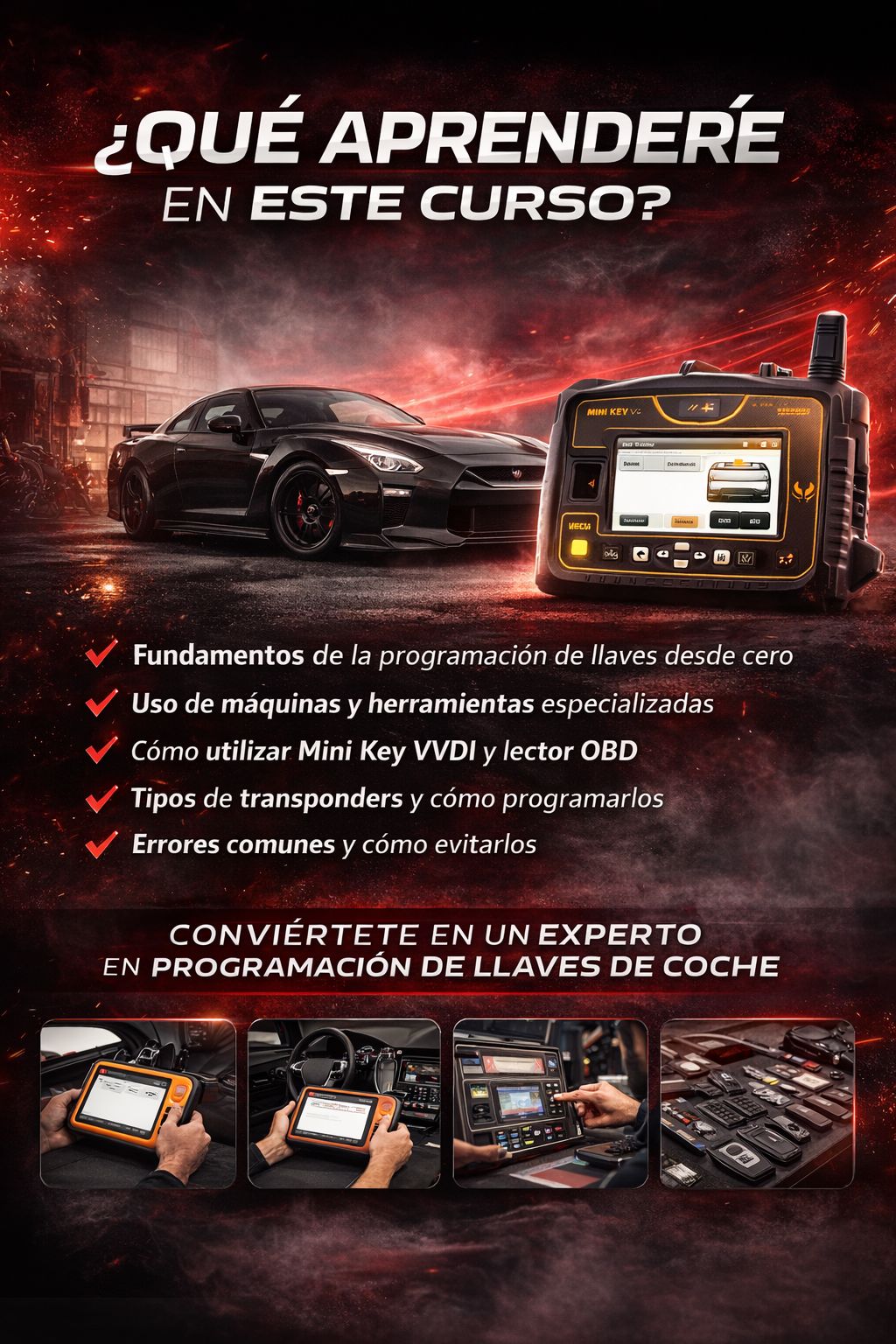 Aprenderás a dominar desde 0 la programación de llaves de coches. Diseñado por un experto en cerrajería automotriz con más de 7 años de experiencia.
