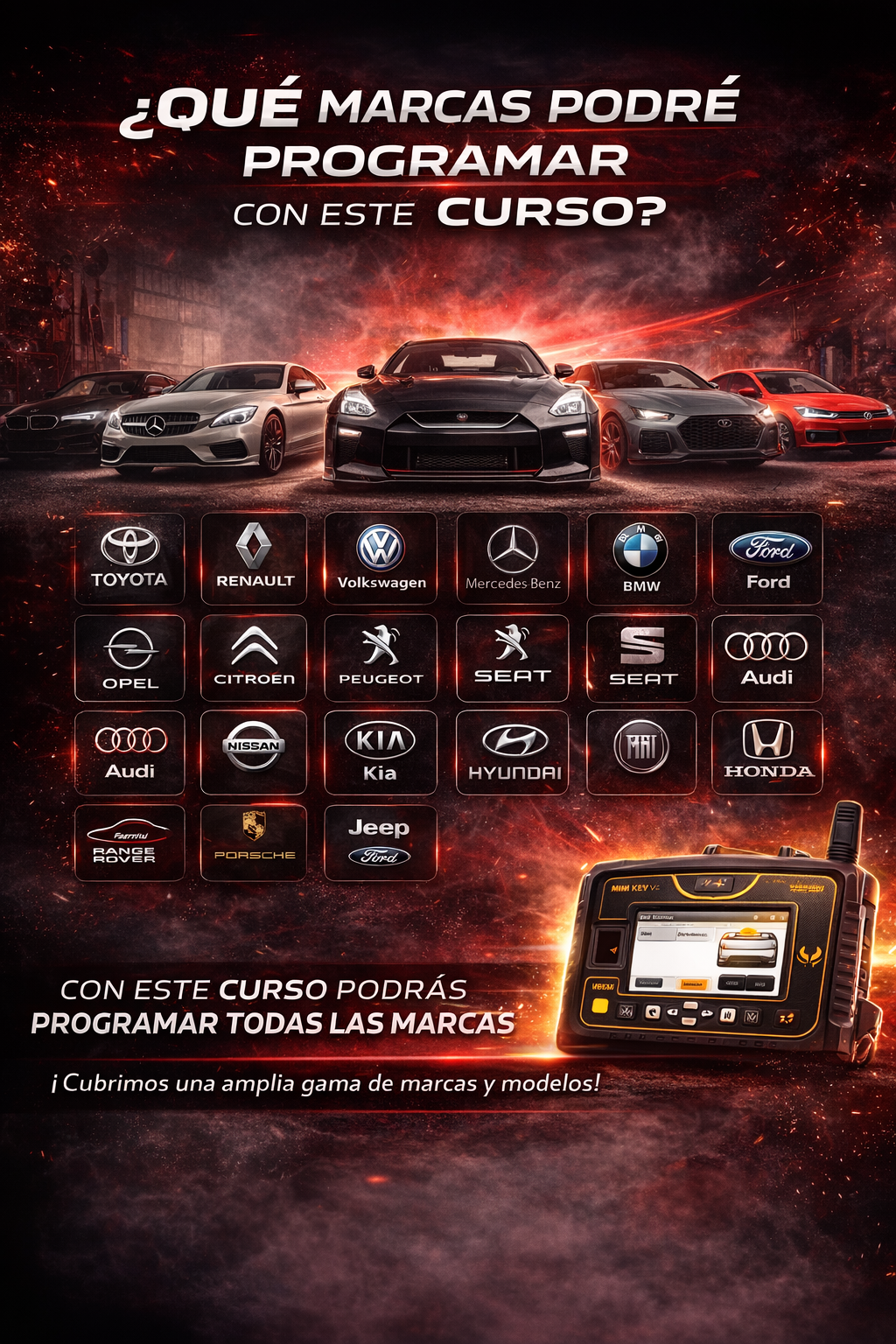 El curso cubre marcas y modelos comunes en el mercado, y aunque algunos coches más nuevos pueden requerir herramientas adicionales, los conceptos que aprenderás se aplican a la mayoría de los vehículos.